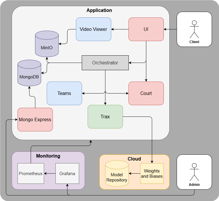 The project also includes automated tests covering service connectivity, end-to-end video processing, court panorama creation, database connectivity, and cleanup of generated artifacts. These tests help ensure reproducibility and robustness of the pipeline.